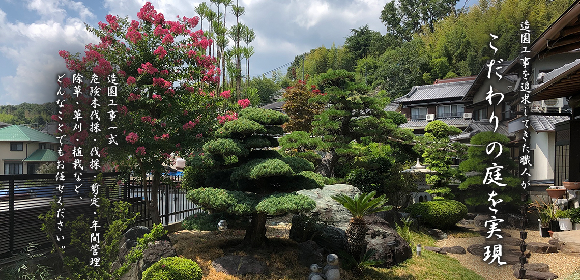私たち日高造園は、兵庫県川西市を中心とした北摂エリアで伐採・剪定・年間管理・除草・植栽など、造園工事一式に対応。